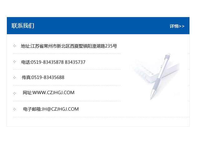 傳真:0519-83435688    郵編:213135    網址:WWW.czjhgj_com.jhzuanju.com    電子郵箱:JH@czjhgj_com.jhzuanju.com